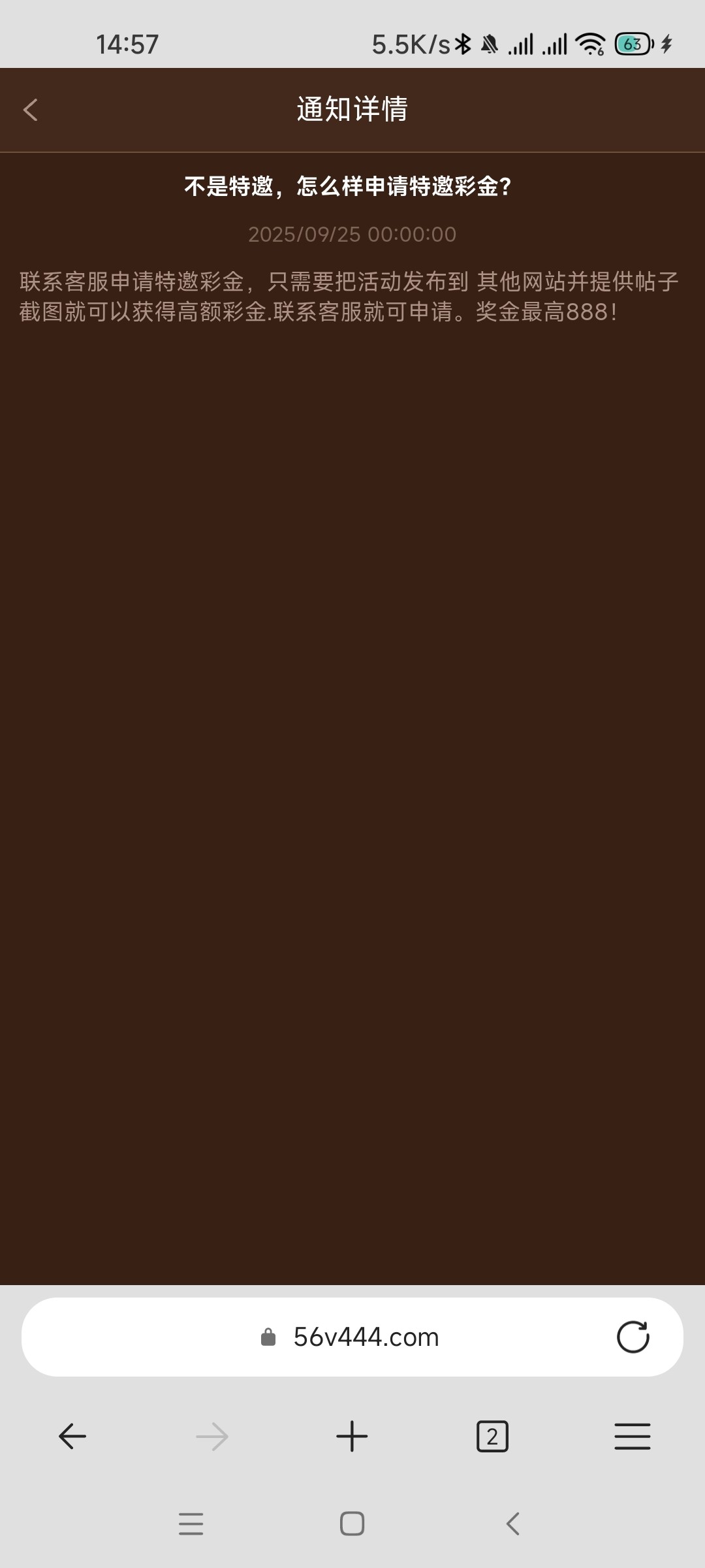 56v.com. 发完帖子后找客服申请特邀彩金