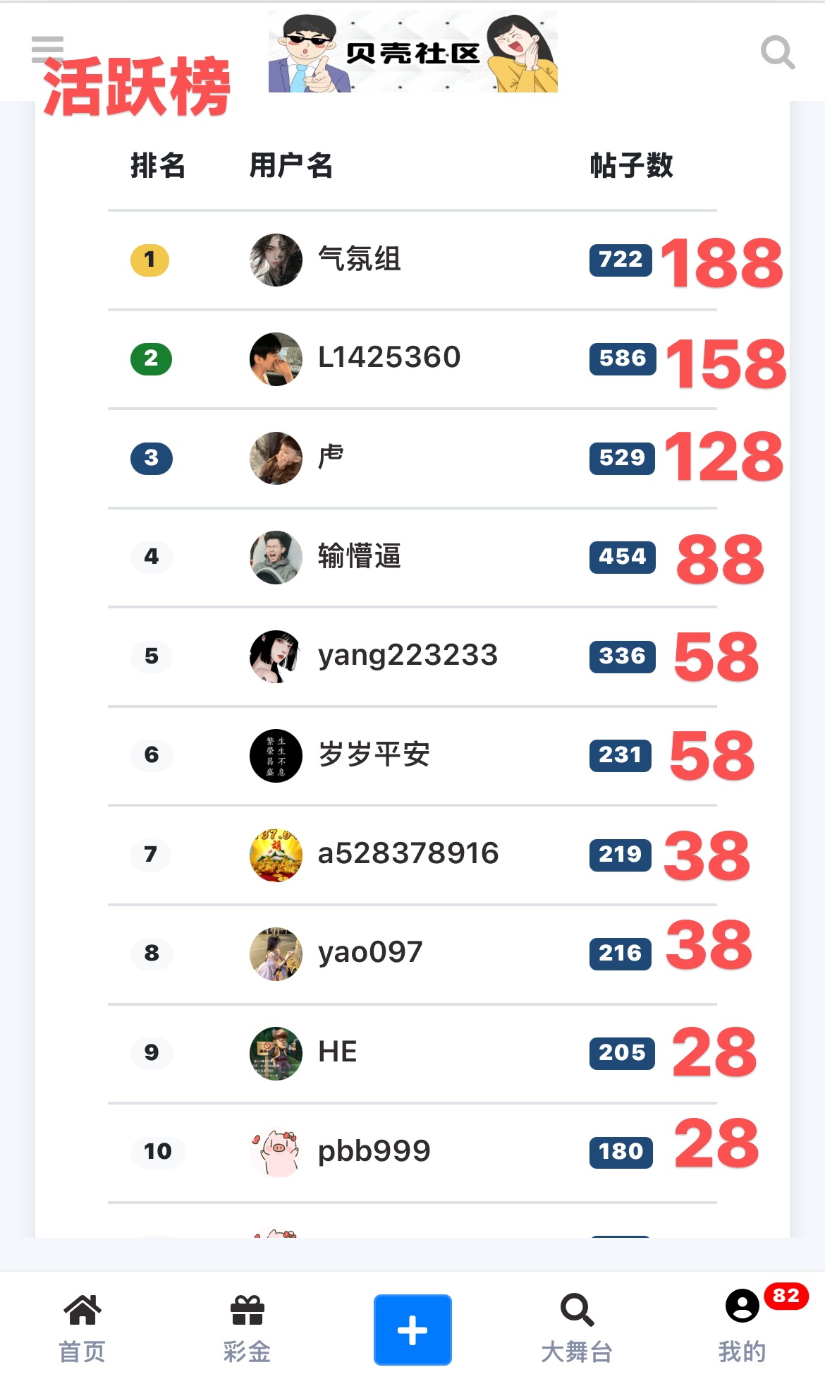 对当月发帖和活跃用户进行嘉奖