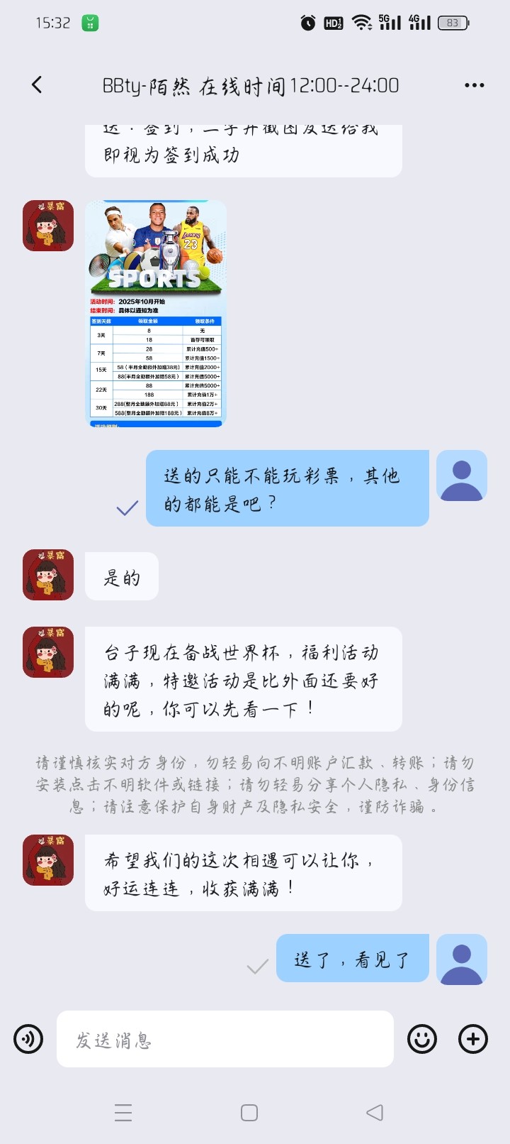 电话打过来说加q群要下载企讯达具体看图片送了38,不用加群,直接加他能送就送,送了之后不能玩彩票,其他的都可以玩