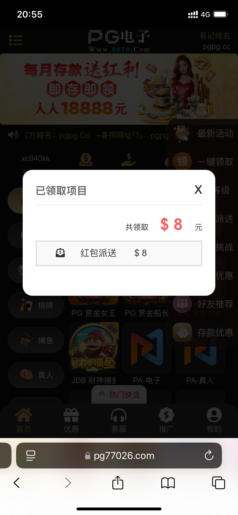 【PG0870历史存款回馈】