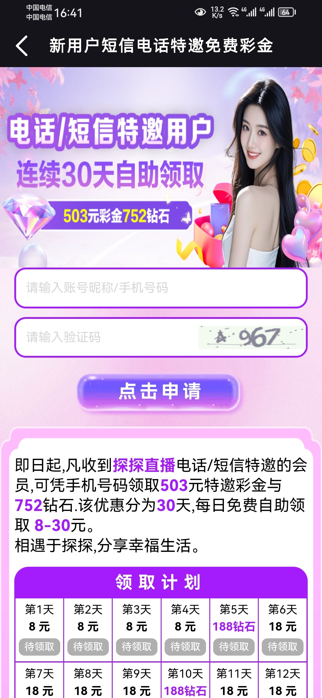 枫枫 不用问直接活动那里输入手机号领取
